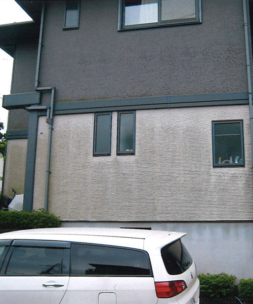 左画像2007年(スマホでは上) 新築から8年 北面にカビがびっしり生えている。 対策・・・ 光触媒ブライトセラム施工実施